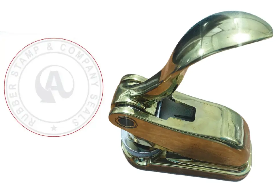 - But it’s not just about making a statement; it’s about functionality too. The Golden Portable Company Seal is designed for seamless operation, allowing you to emboss documents with ease and precision. With just a simple press, you leave behind a crisp, clear impression that signifies authenticity and authority.